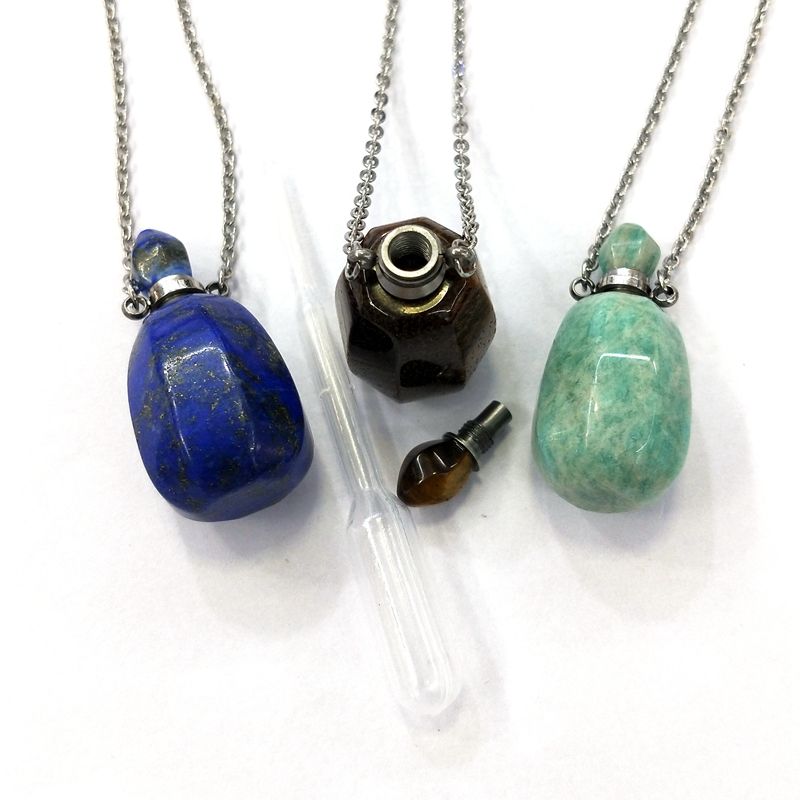 Bouteilles de parfum en pierre précieuse naturelle polie, bouteille de parfum plaquée or, collier, flacon de parfum, flacon d'huile essentielle, bijoux