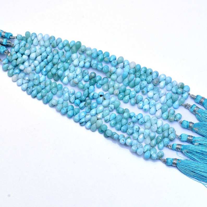 Perles de pierres précieuses en forme de larme à facettes naturelles Larimar 7x4mm perles en vrac pour la fabrication de bijoux au prix de gros