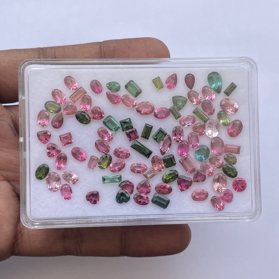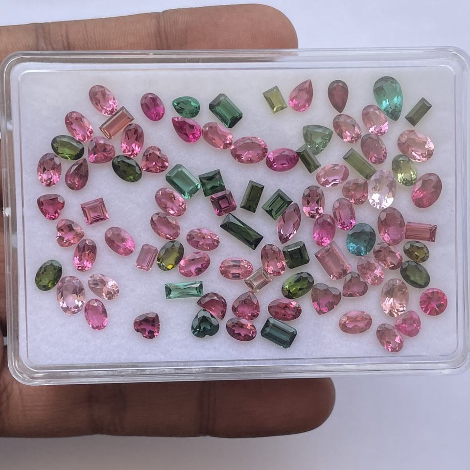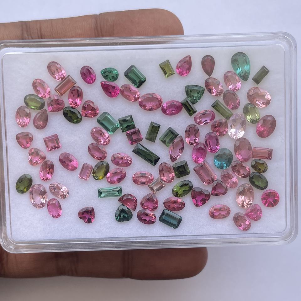 Natural Pink Green Tourmaline Trillion Heart Round Shape Gemstones