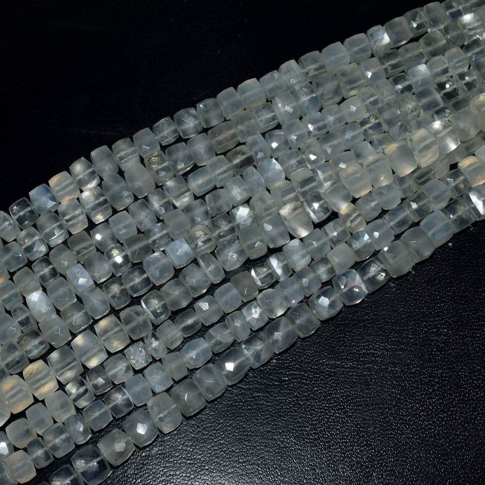 Matériel:Perles blanches naturelles de forme de boîte à facettes de pierre de lune