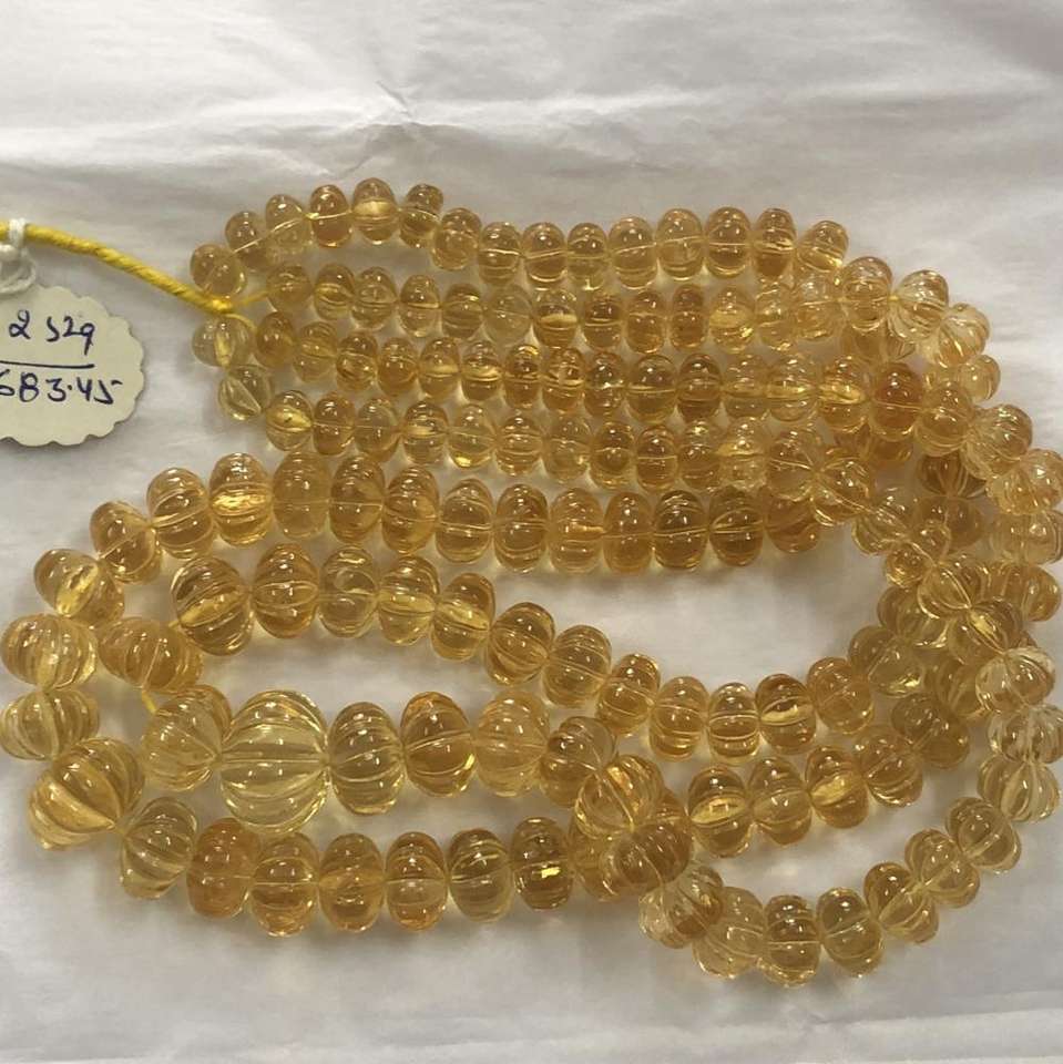 Product Name:Natural Citrine Carved Melon Gemstone Beads