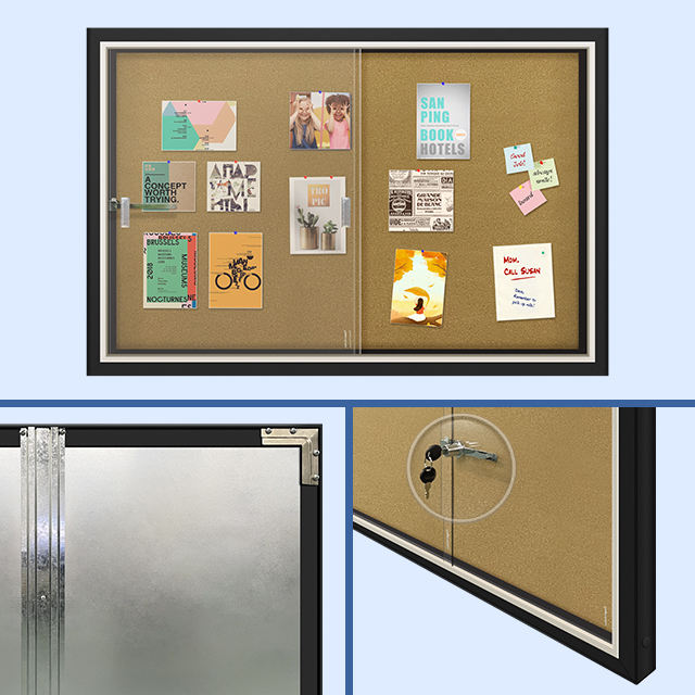 Nouvelle arrivée de haute qualité vitrine murale porte en verre feuilles de liège cadre noir panneaux de Notice panneau d'affichage verrouillable