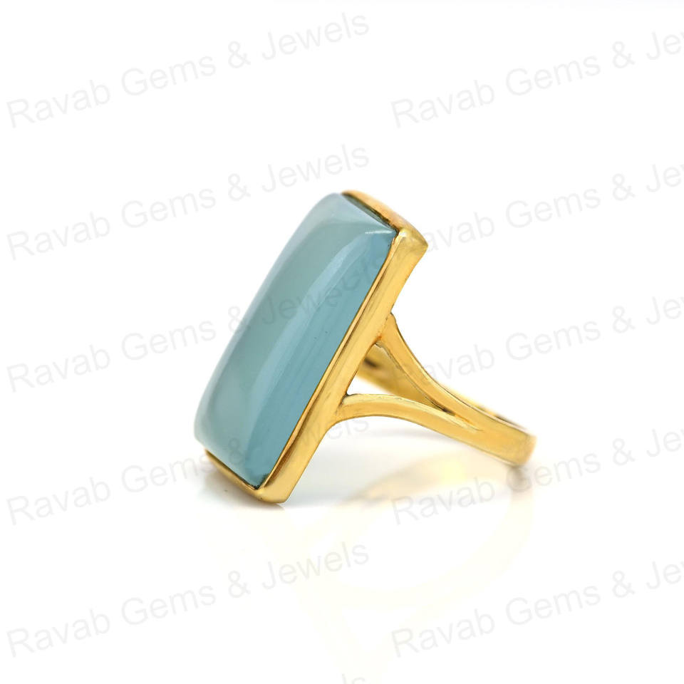 Product Name:Natural Smithsonite Sterling Silver Gold Plated Statement Ring