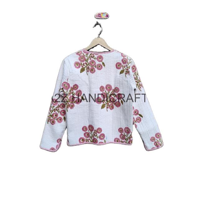 Vintage Kantha Sheep Skin Waist Jacket Handmade Quilted Coat Free Edge Printed Design Autumn Winter Trendy Style Short Button
