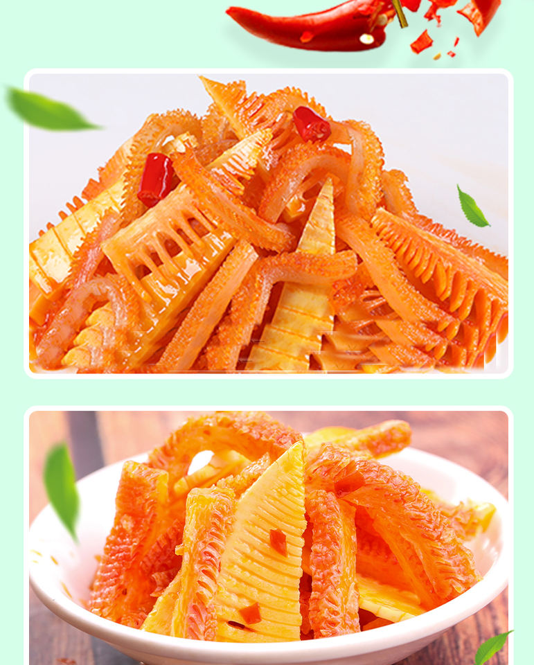 Nom du produit:Nouveau produit frais en bambou Shoot Konjac végétarien tripes snack épicé