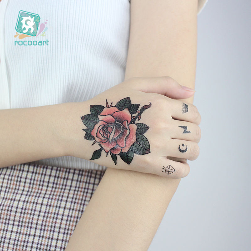 Nouveaux autocollants de tatouage temporaires imperméables pour femmes et hommes, motifs de tatouage indiens, fleurs, roses, faux tatouages pour les mains, les bras, les pieds, le dos