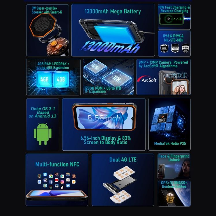 Dispositif:Double carte sim, Reconnaissance des visages, Empreinte digitale, Jeux, NFC, Charge rapide, Antichoc, Imperméable