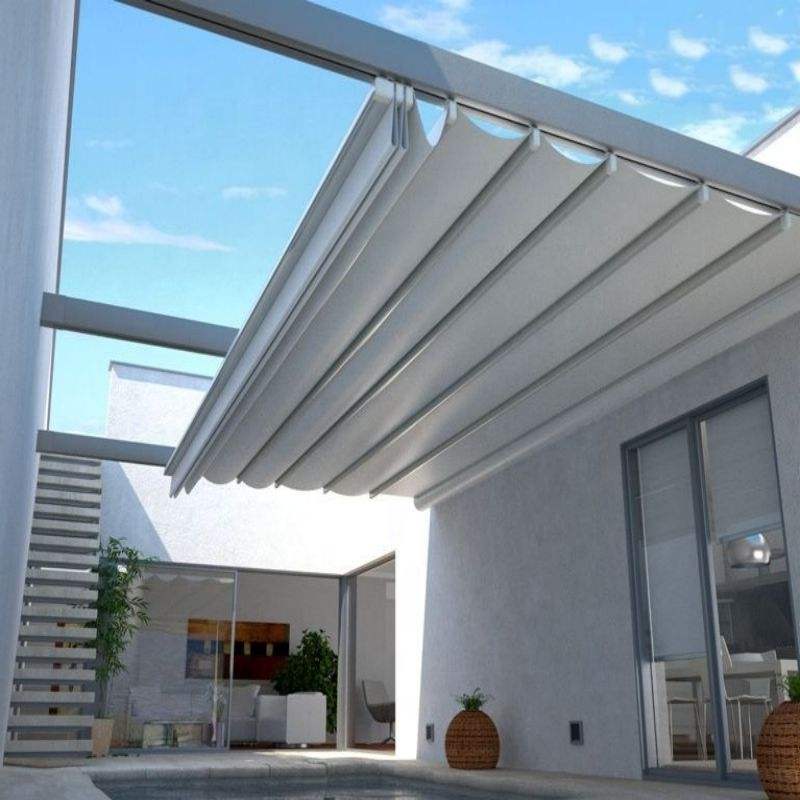 Hôtel, Extérieur, Commercial, Jardin, ARrière-cour, Protection solaire, Parasol, Auvent rétractable, Preuve de l'eau, Électrique, Balcon, Canopée de pluie, Décoratif, Protection contre la pluie, Terrasse, Gazebo, Lumières DEL, Patio extérieur, Jardin extérieur, Auvents de pergola motorisés, Protection UV, CAFÉ SHOP, Piscine, Résidentiel, VILLAApplication
