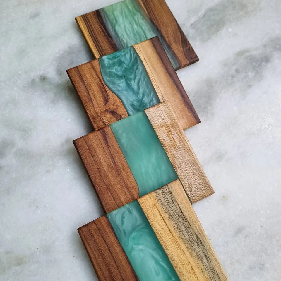 Nom du produit:Caboteurs personnalisés en bois d'acacia, caboteur d'époxyde de rivière de résine de turquoise