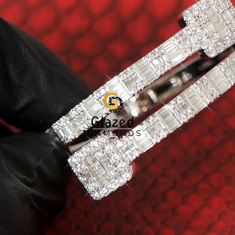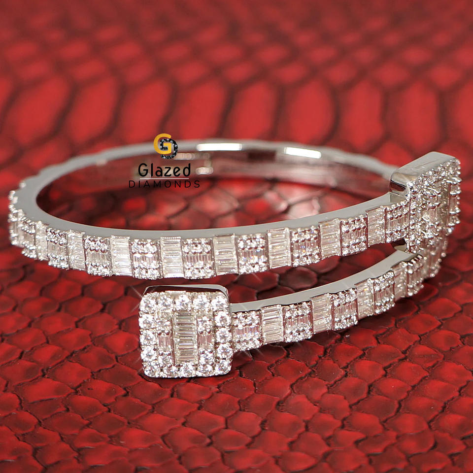 Nouveau bracelet jonc captivant entièrement glacé orné de diamants ronds brillants et baguettes cultivés en laboratoire VVs en or blanc 10 carats