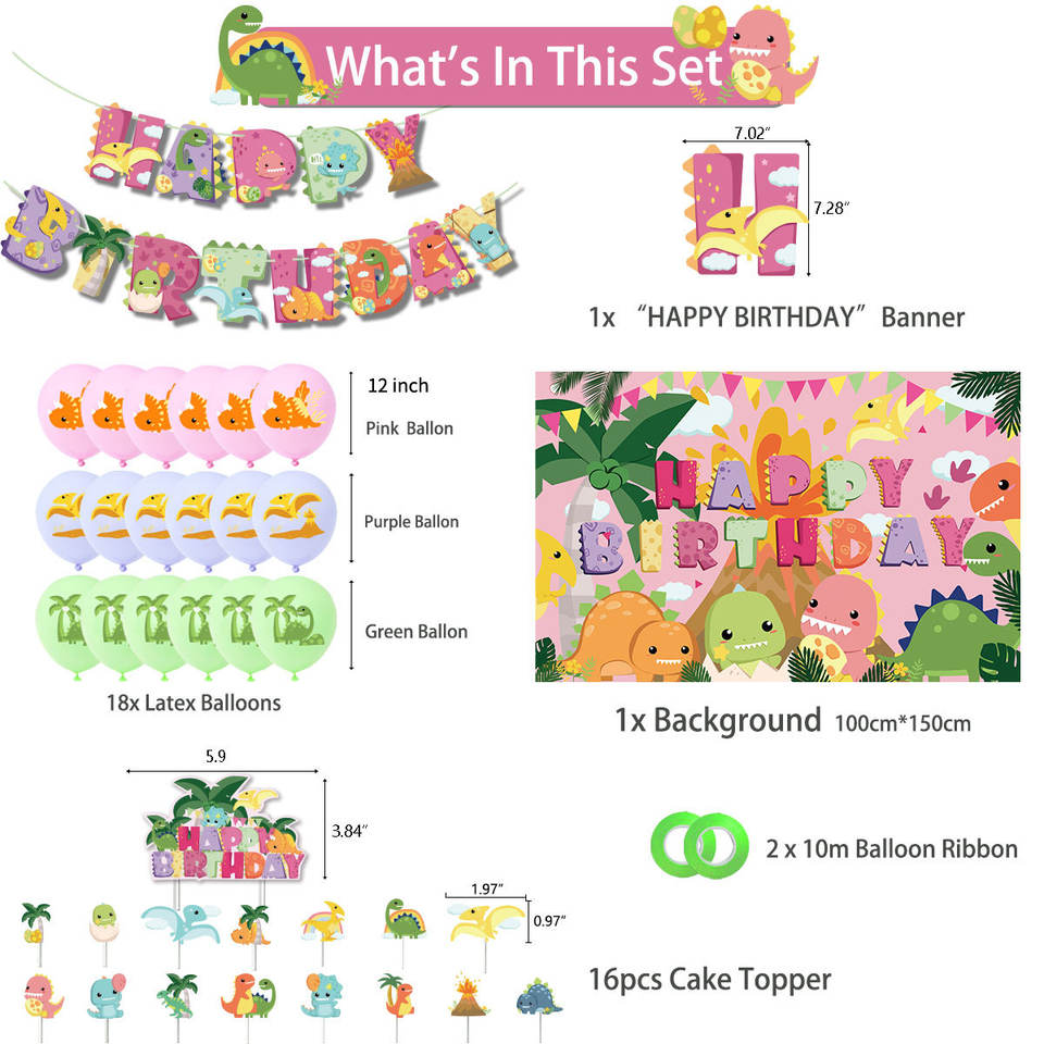Product Name:Pink Dinosaur Party Balloons Banner Cake Topper Decor Girl