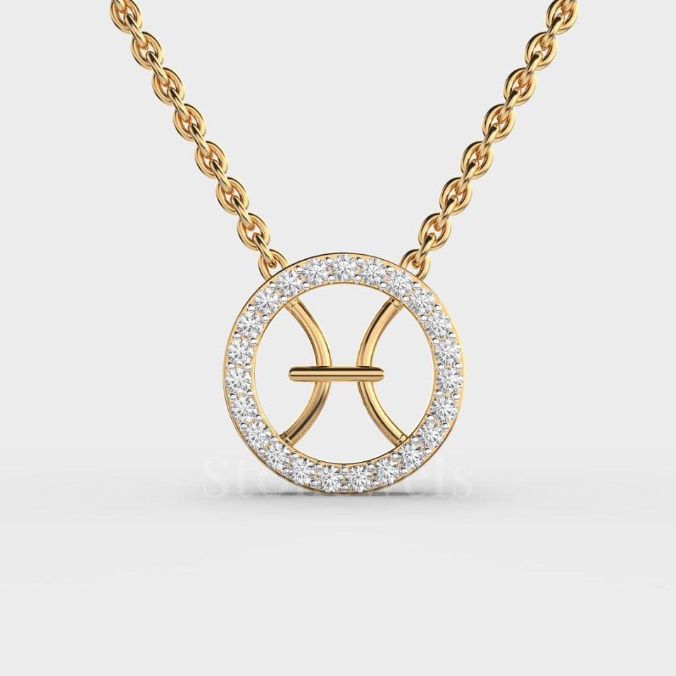 Model Number:Pisces Zodiac Diamond Necklace-Gold