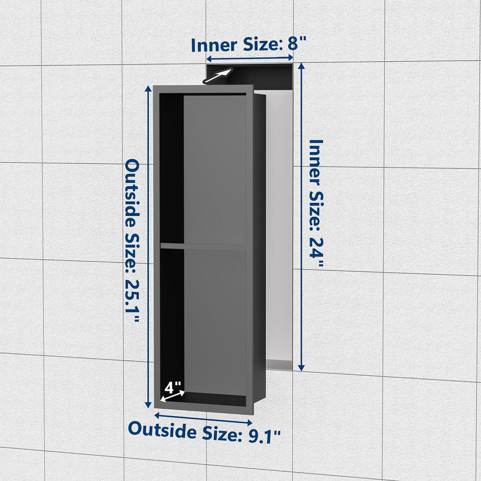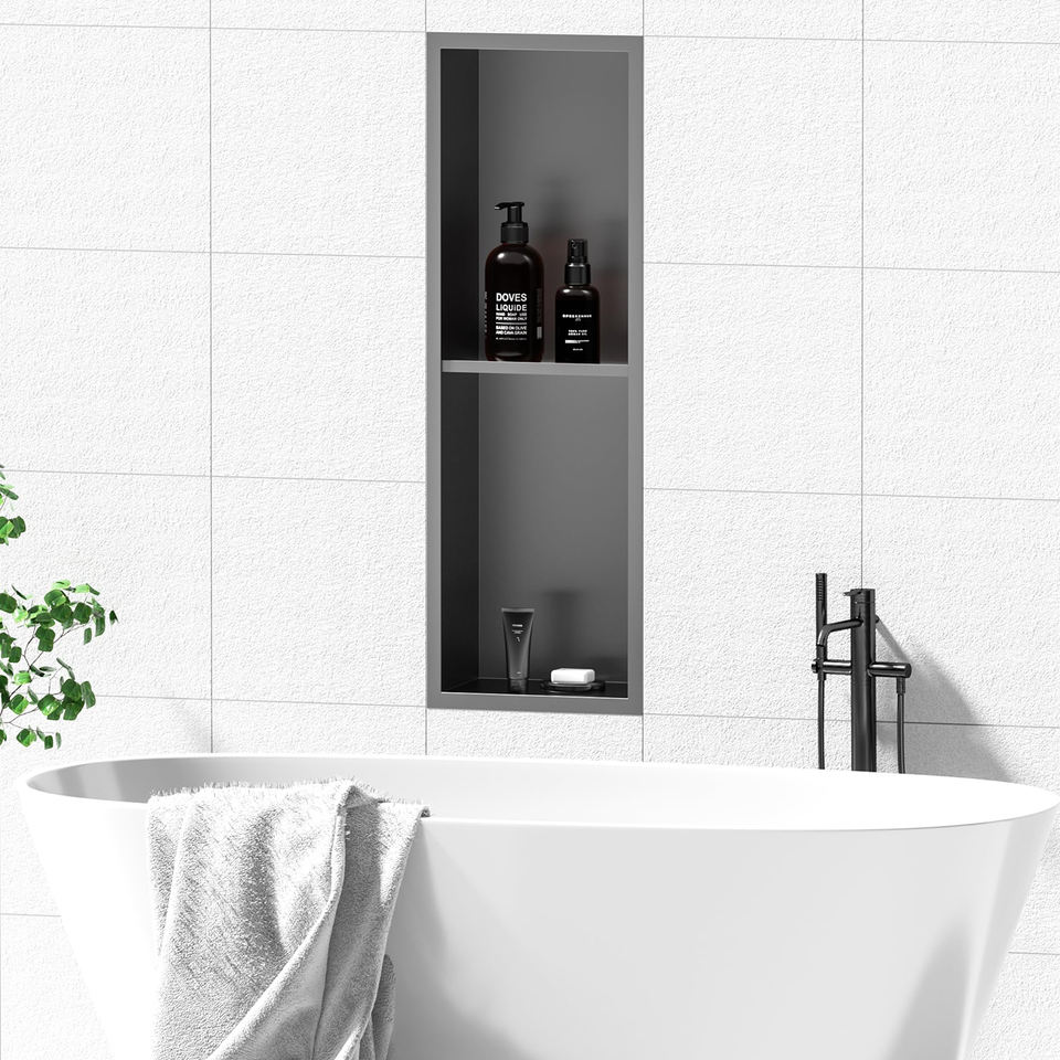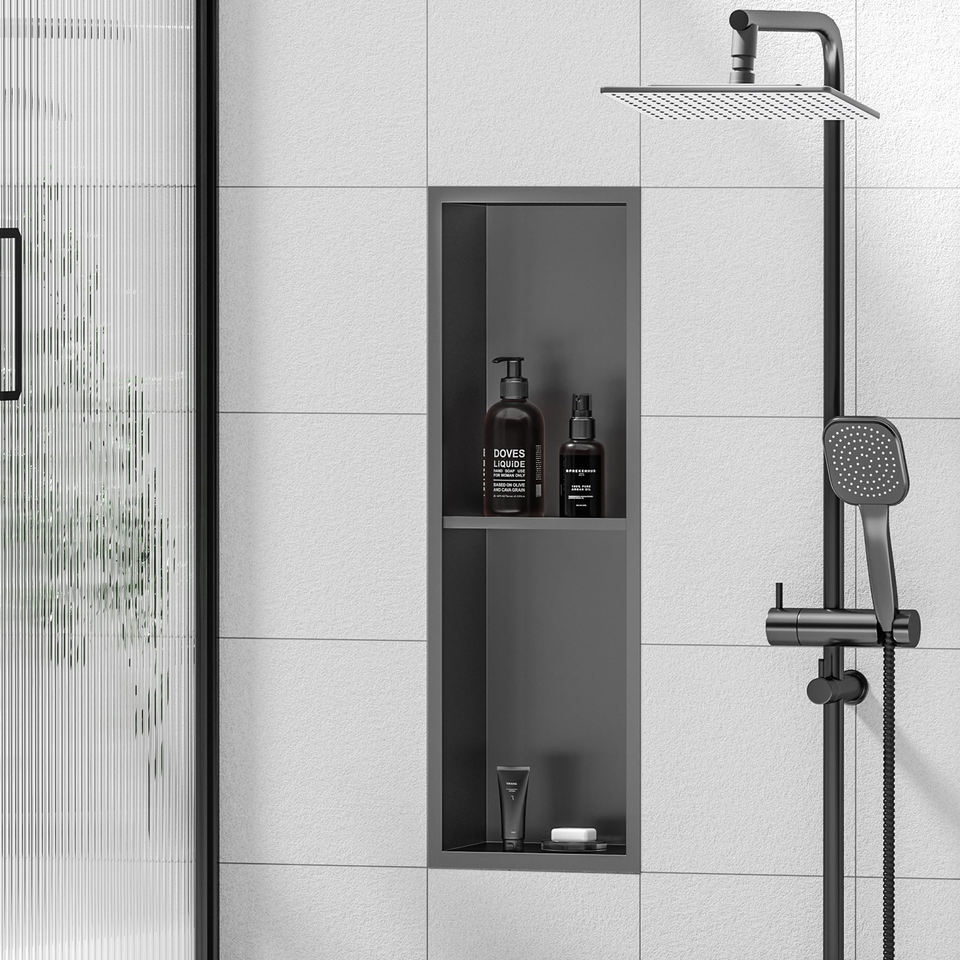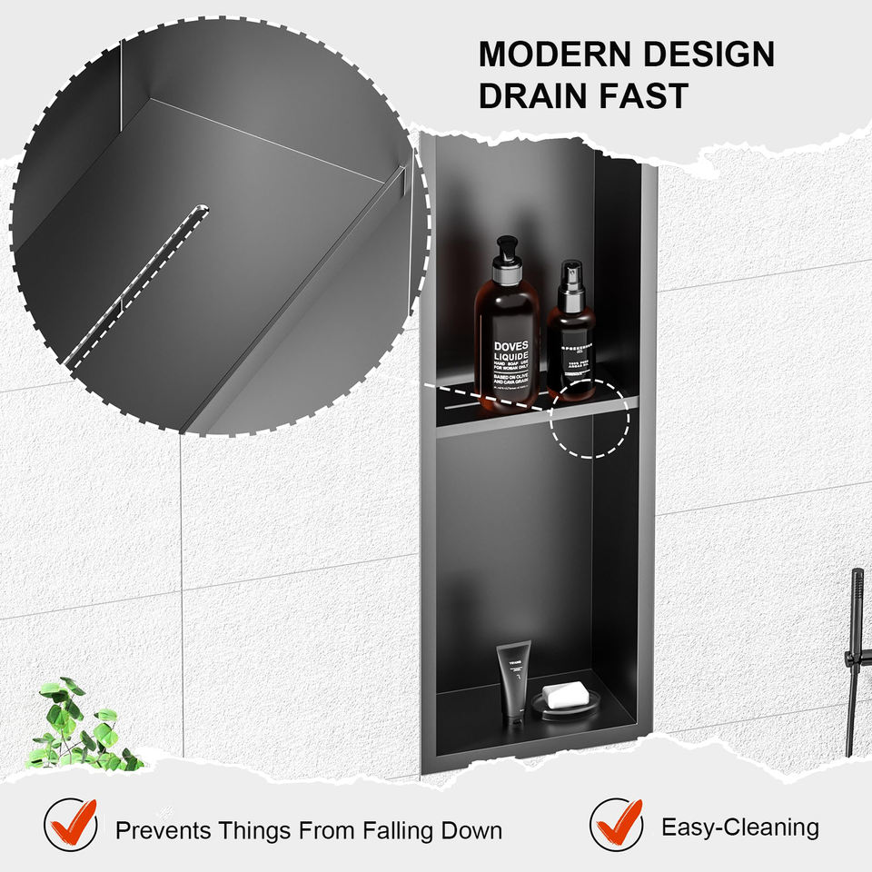 Black PVD-Coated Double-Decker Shower Niche with Anti-Flood Design