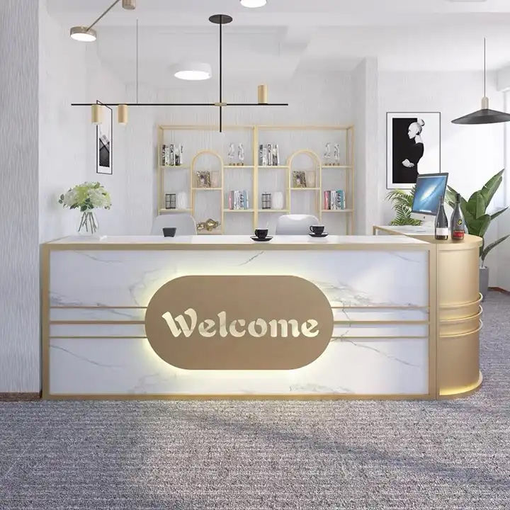 Comptoirs de réception en pierre d'occasion: petites options élégantes en forme de U pour les zones de réception de salon de coiffure