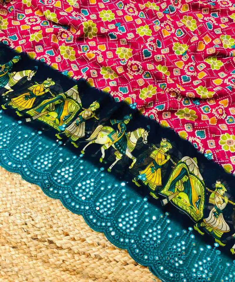 Saree de nouveau créateur imprimé avec bordure en dentelle non cousue Exclusif par robe Vêtements ethniques Apparelgarment
