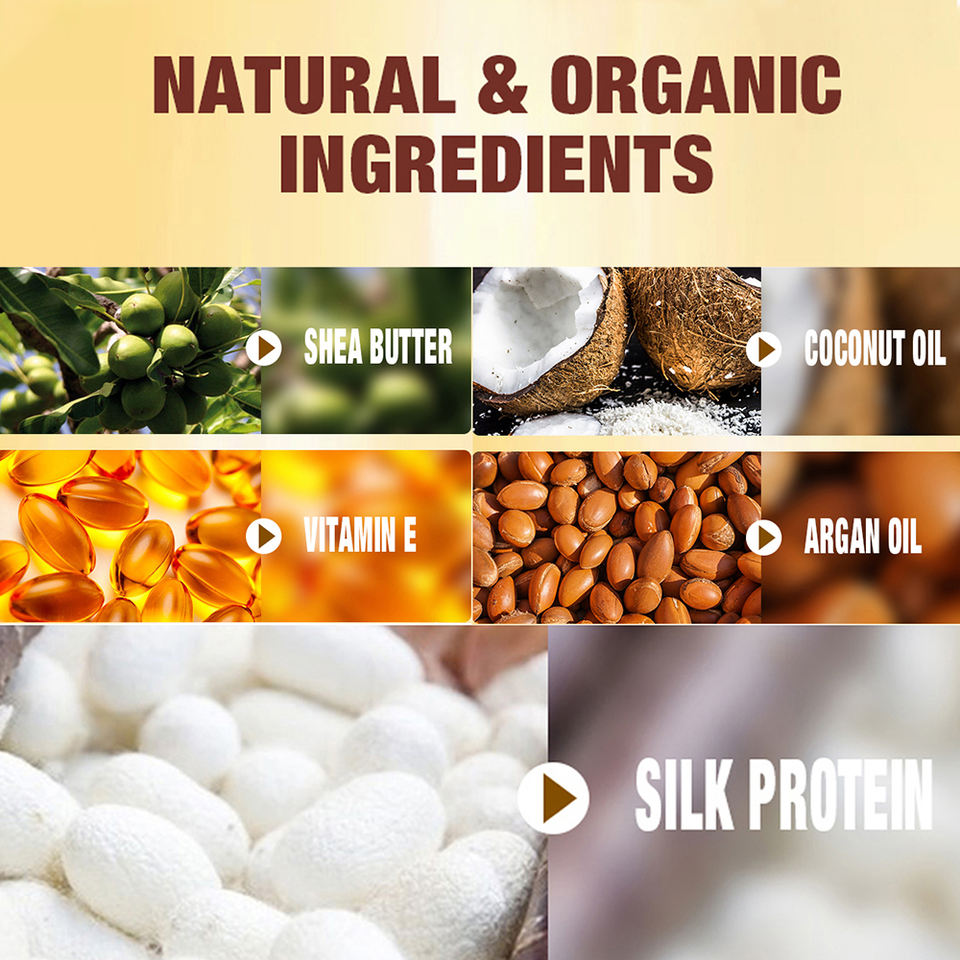 Ingrédient principal:Huile de coco, huile d'argan, beurre de karité, vitamine E, protéine de soie