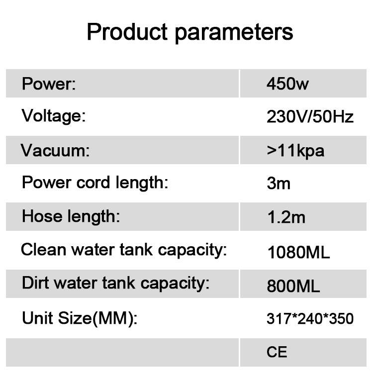 Capacité du réservoir d'eau propre:1.1L