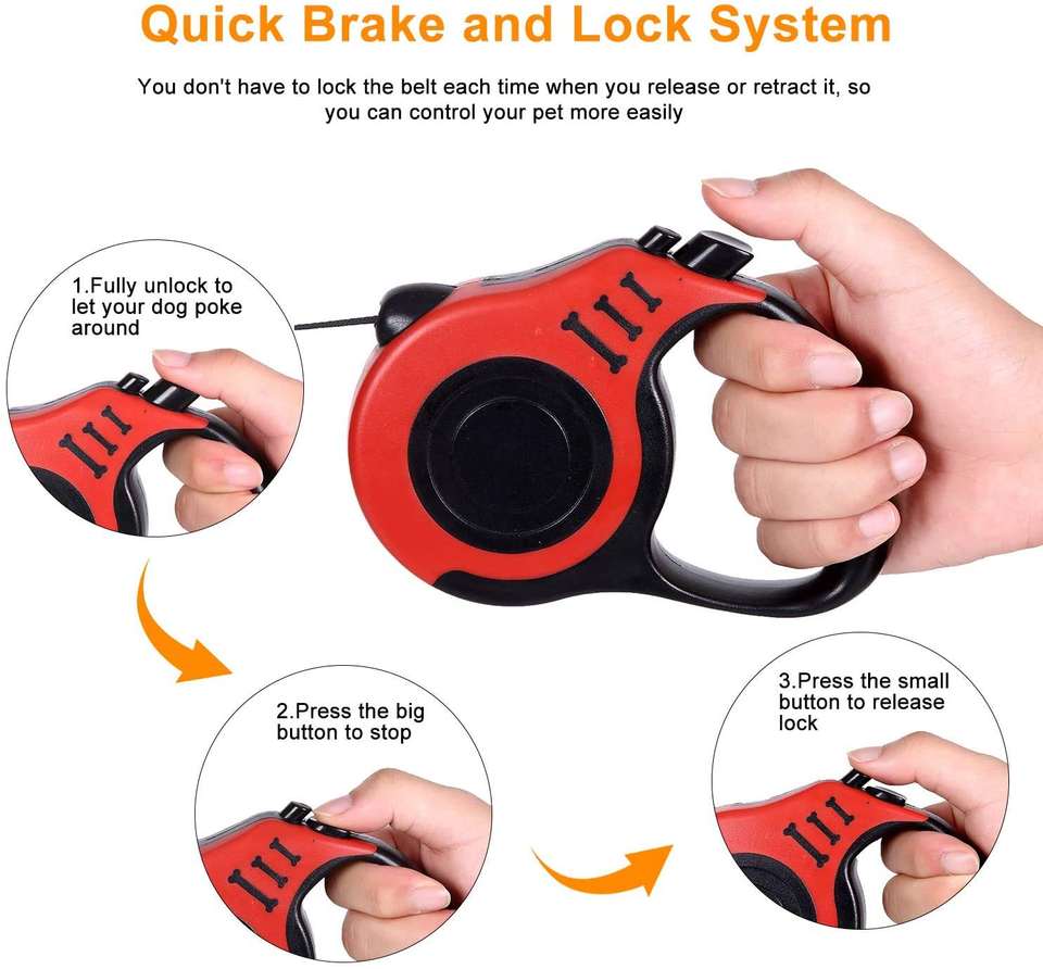 Laisse rétractable pour chien Laisse de marche pour animaux de compagnie Bande forte sans enchevêtrement Verrouillage et déverrouillage à une main avec poignée antidérapante,
