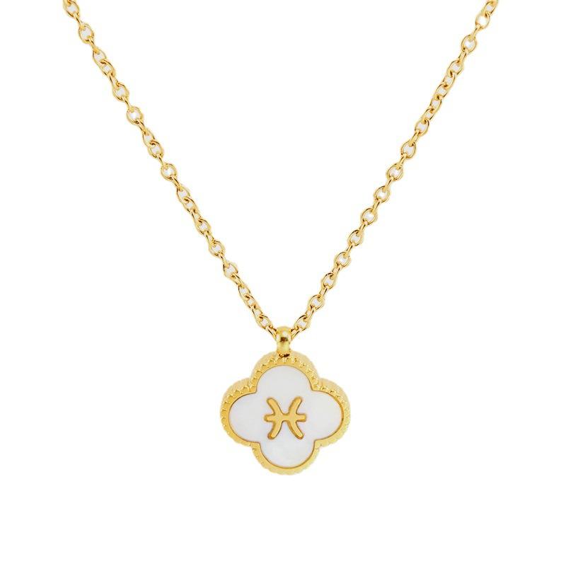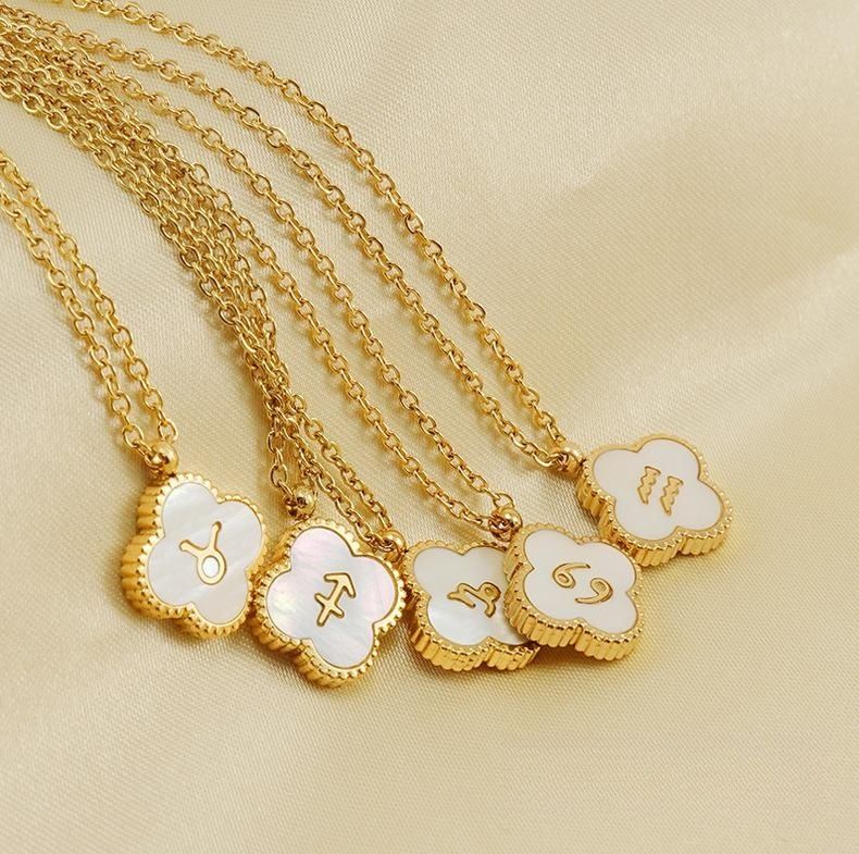 SSeeSY créateur de bijoux de mode astrologie horoscope signe du zodiaque collier en acier inoxydable coquille trèfle pendentif collier pour femmes