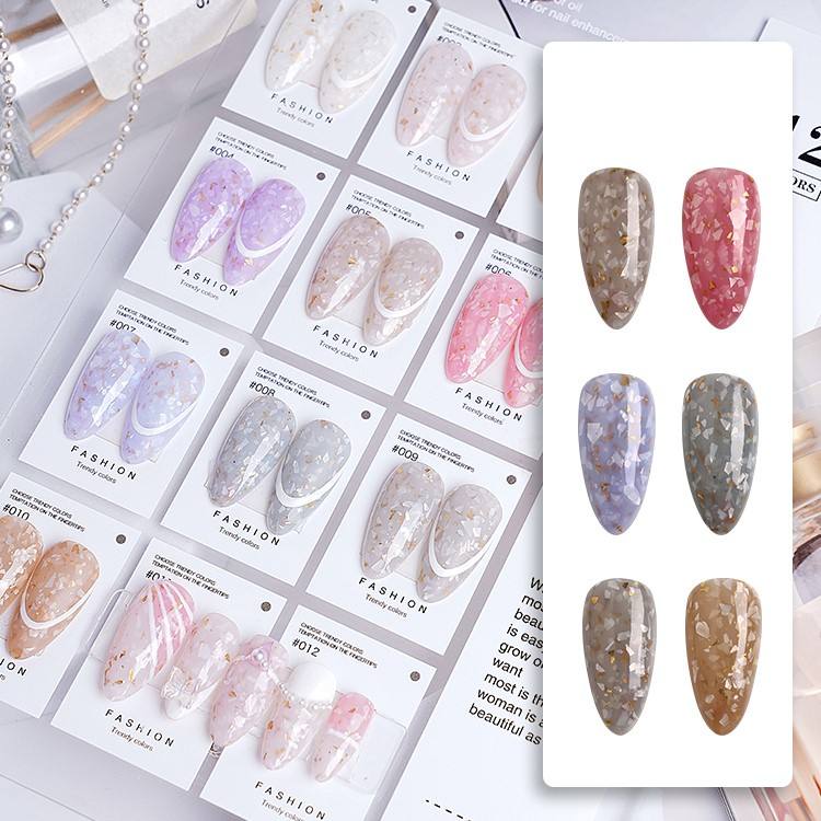 Salon Wholesale Marble Color Nail Art Summer 2022 Confetti Glitter Gel Polish White Shell Gold Flakes Rubber Base Coat UV Gels