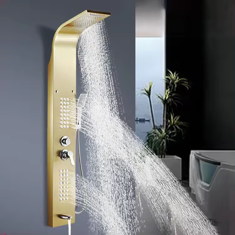 Dispositif exposé de robinet de douche:Avec barre coulissante
