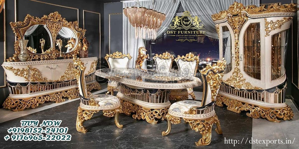 Ensemble de table à manger sculpté de luxe en métal argentéNom du produit