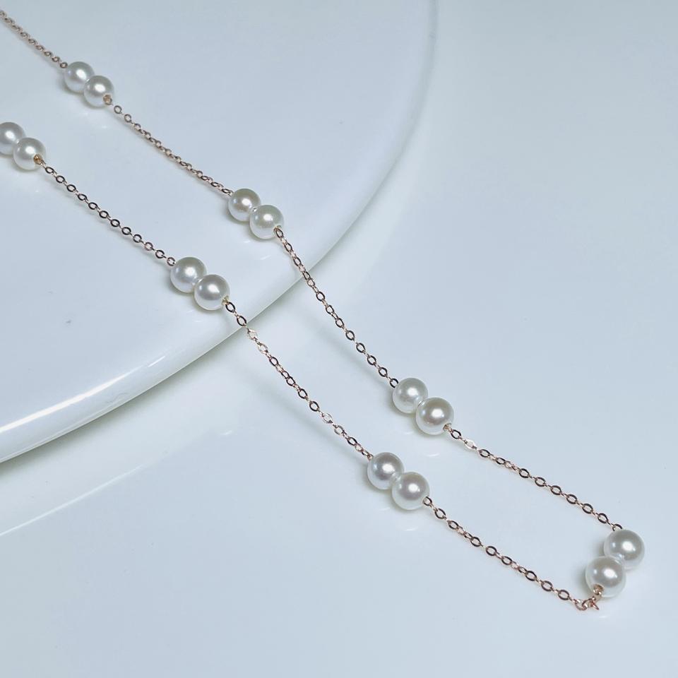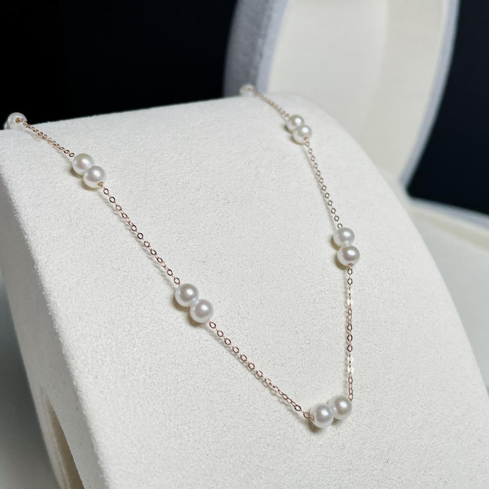 Le collier de petites perles d'eau douce naturelle Full Star en or 18 carats est rond et léger, perles de millet superposées authentiques au750