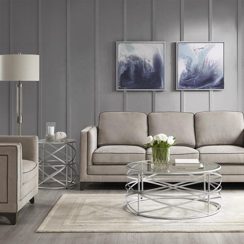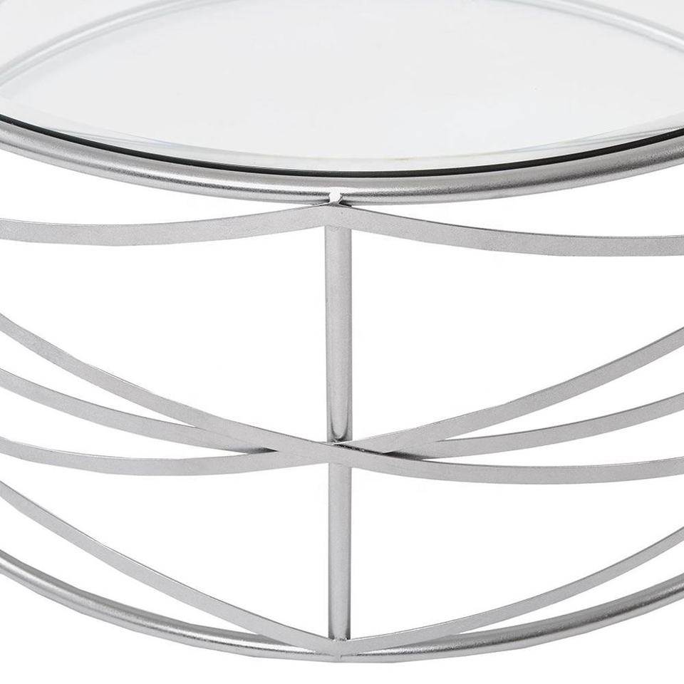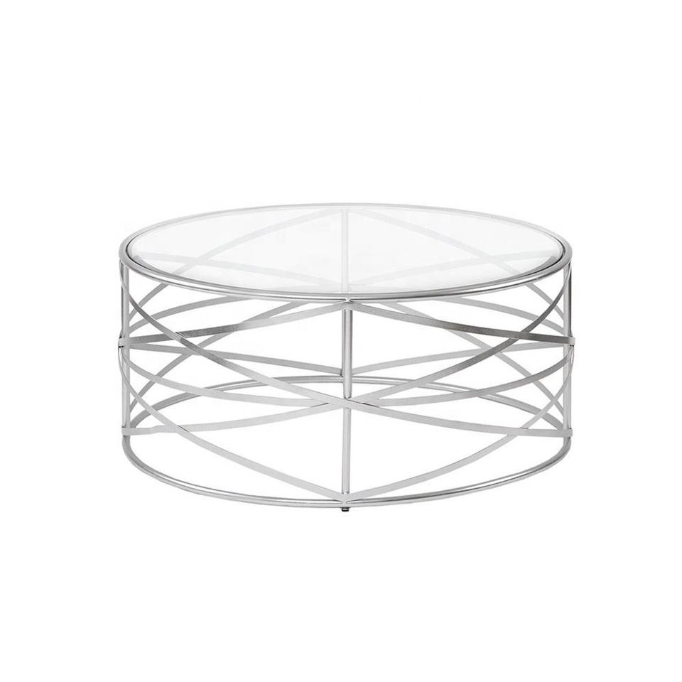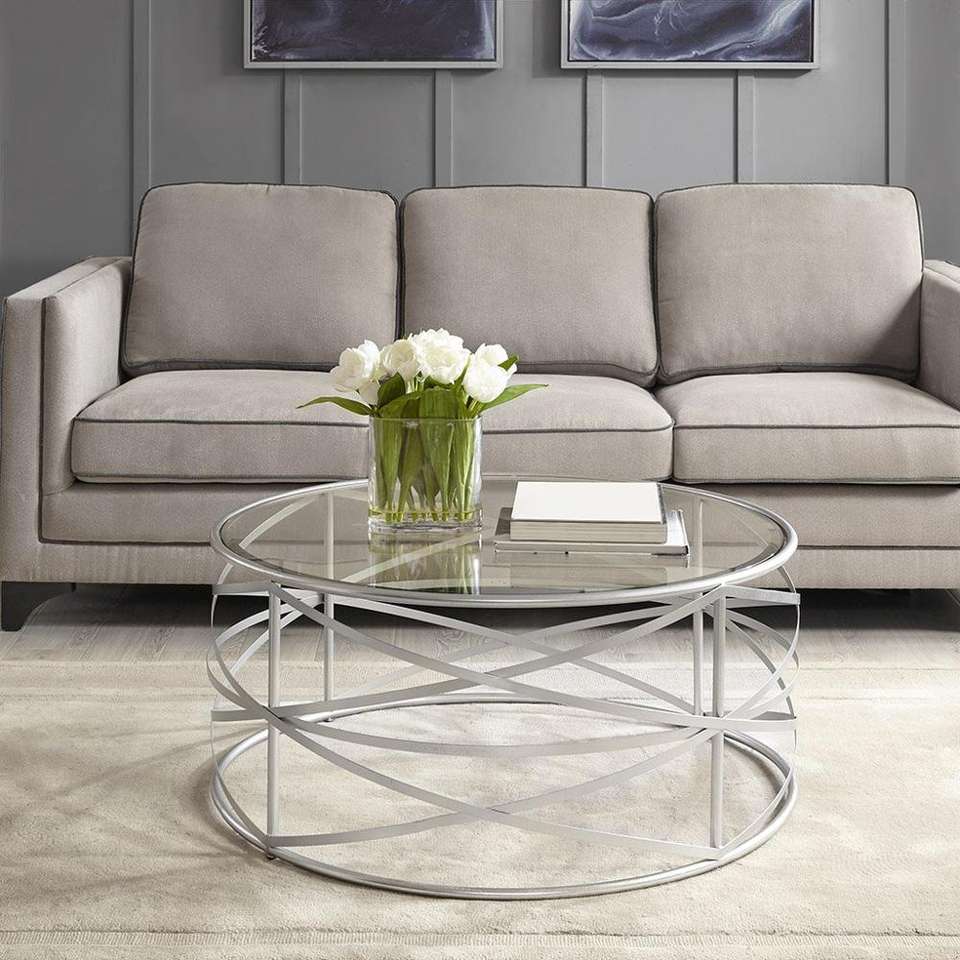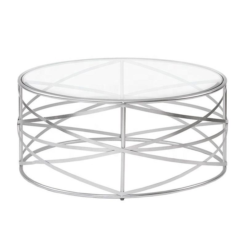 Product Name:Round Coffee Table with Metallic Silver Metal Frame and Glass Top
