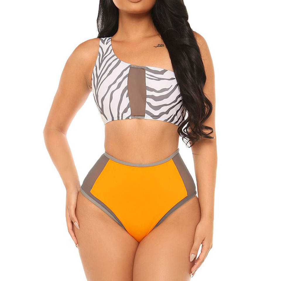 Une-épaule, CRAVATE-AVANT, Crop-Top, Dossier de bain, Triangle, Bikini, Tronc de bain, Une pièce, Taille haute, One Piece, V-couModèle