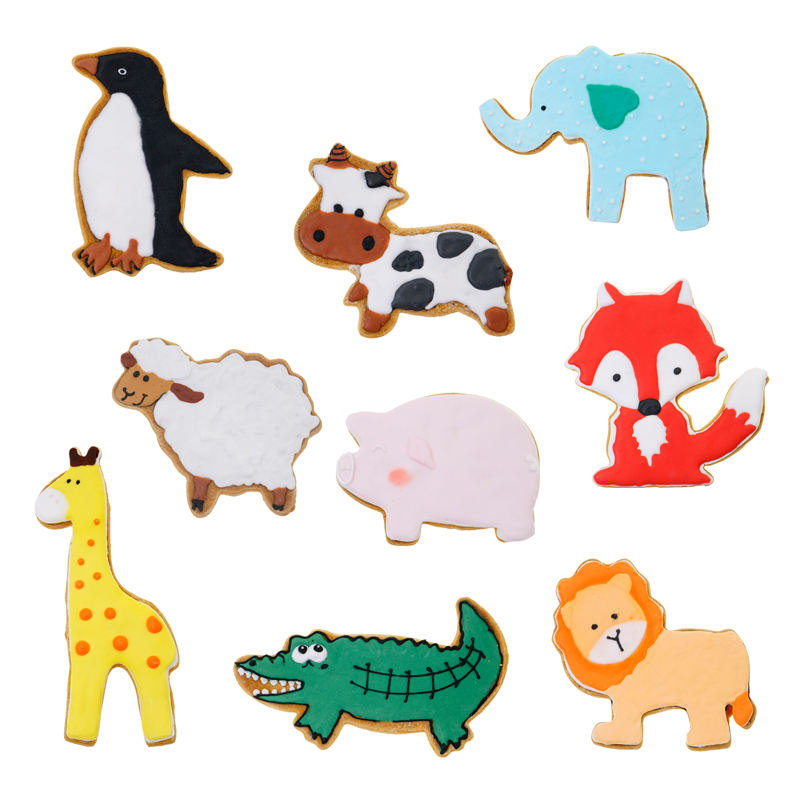 5 étoiles Lion, éléphant, cochon, dauphin, chat, vache et chien, coupe-biscuits avec animaux mignons en acier inoxydable