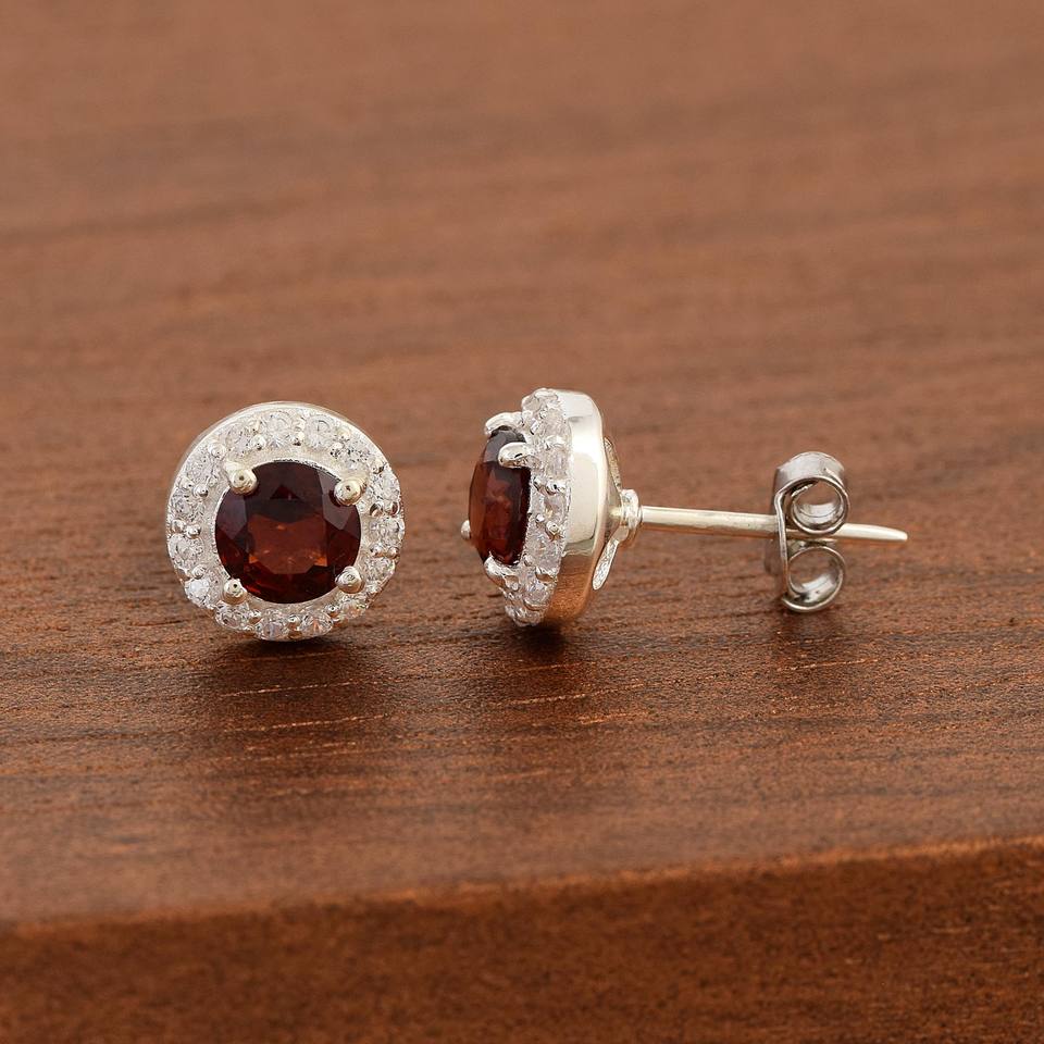 Argent sterling 925 goujons meilleure vente de pierres précieuses de grenat rouge naturel avec Zircon boucles d'oreilles en gros prix le plus bas bijoux de mode