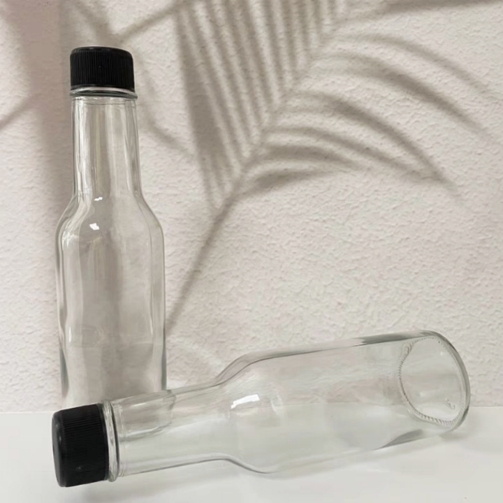 Stock Clear Glass Tabasco 5oz 150ml Hot Sauce Woozy Glass Bottle with Leak Proof Screw Cap and Dropper Insert Glass Packing