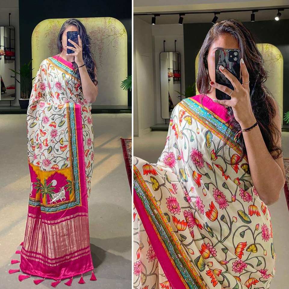 Saree en mousseline de soie douce au design époustouflant, feuille scintillante au toucher de luxe, conçu avec un matériau en rayonne de lin et de coton.