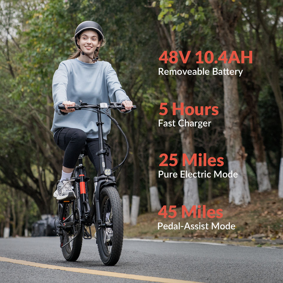 Feature:Foldable, Led Display, Shock Absorption, Disc Brakes, fat tires, pedal assist, Removable Battery, rear rack, front basket, Adjustable Seat, lightweight frame
