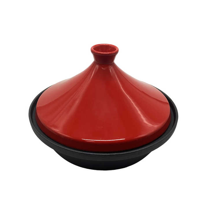 Tajine de marmite en fonte émaillée avec couvercle fermé en forme de cône en céramique