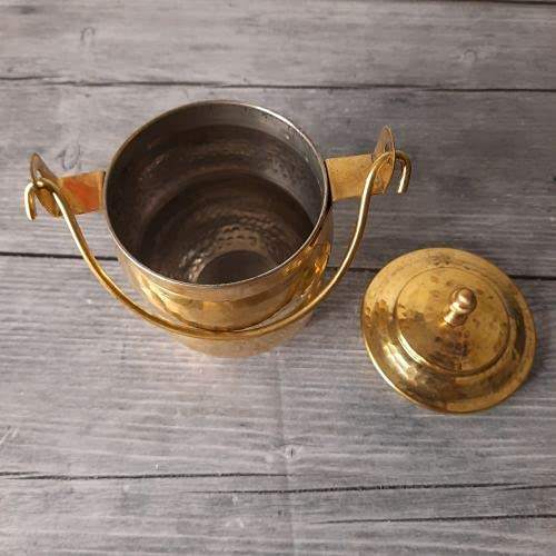 Récipient de stockage d'huile de ghee en laiton de pratique de sagesse traditionnelle avec couvercle