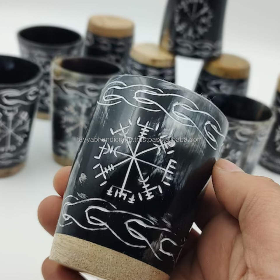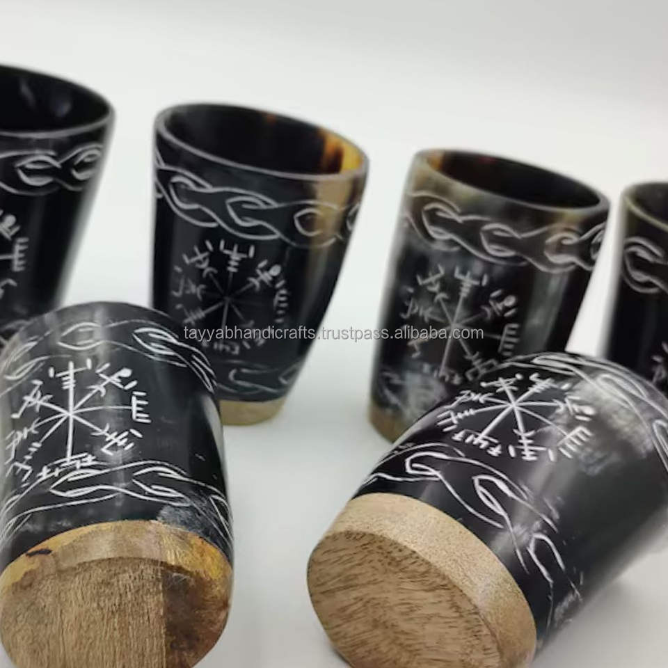 Verres à liqueur en corne de bœuf blanche gravée à la main, d'Inde
