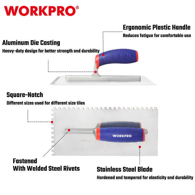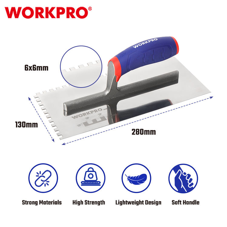 Nom du produit:WORKPRO Truelle à stuc en acier inoxydable 280*130MM avec manche souple