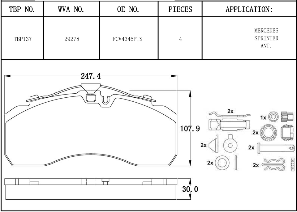 Nom du produit:Plaquette de frein WVA 29253 pour Mercedes Sprinter