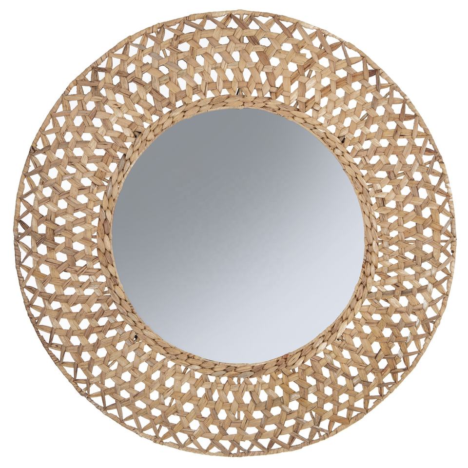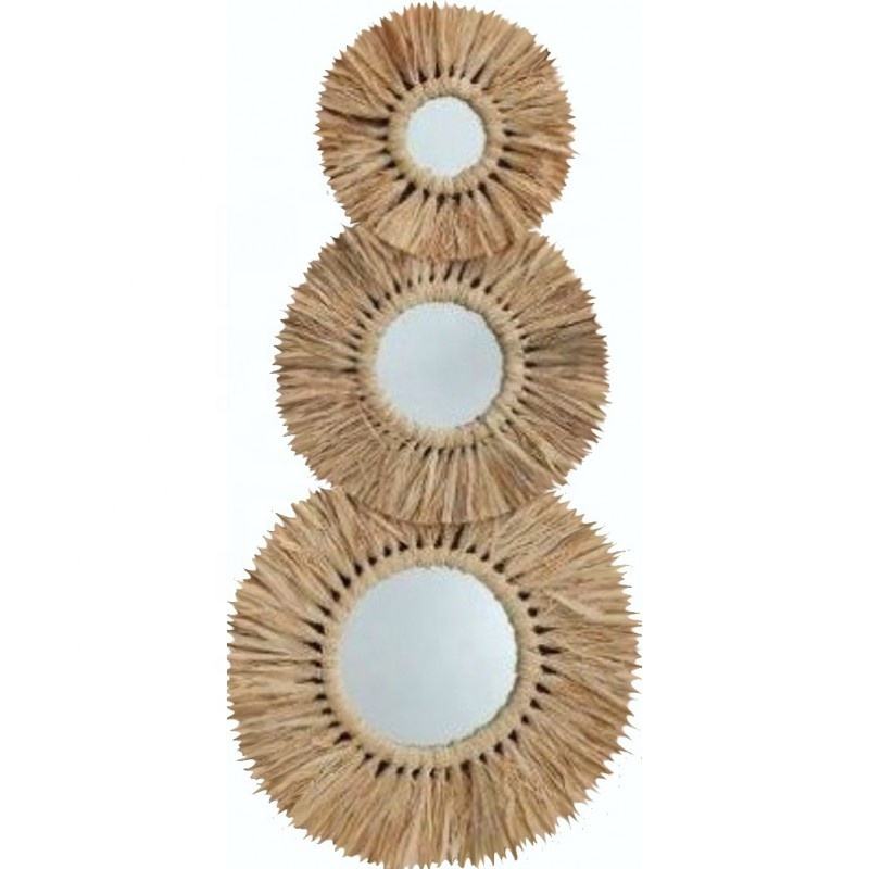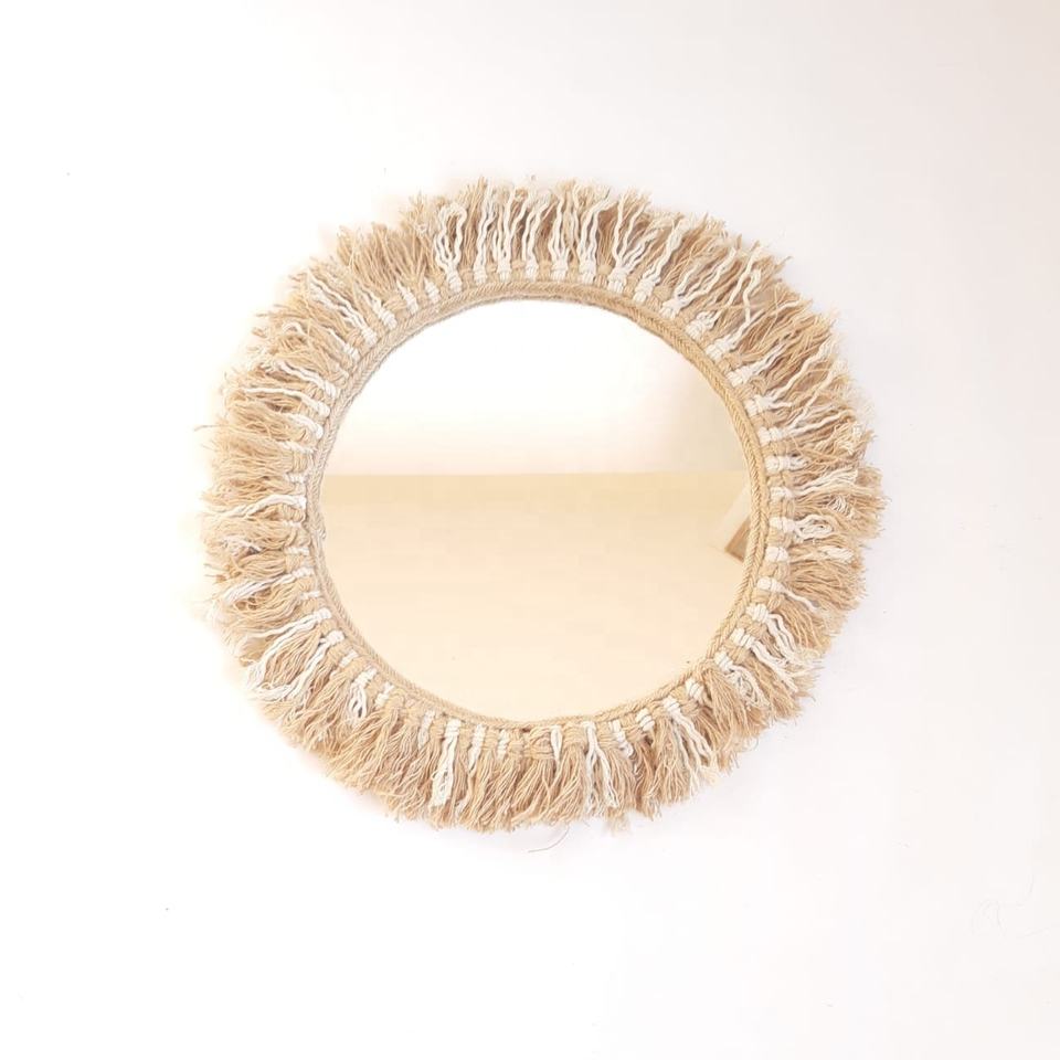 Miroir artisanal en jacinthe d'eau en jonc de mer en forme ronde, meilleur choix pour suspendre la décoration de mariage d'un fabricant vietnamien