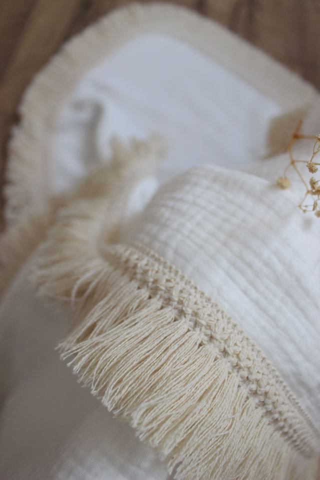 Couverture d'emmaillotage pour bébé élégante et adaptée aux nouveau-nés, couverture en mousseline de coton douce blanche à double gaze avec frange, literie pour enfants