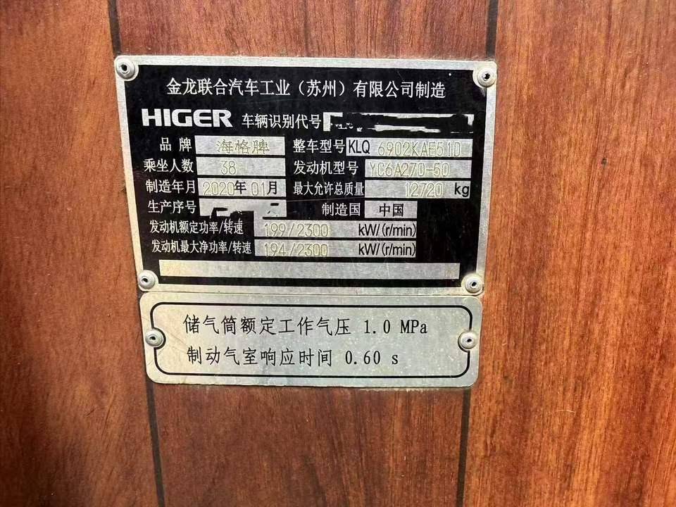 Model:2020Used Bus HIGER 8L BUS Coach