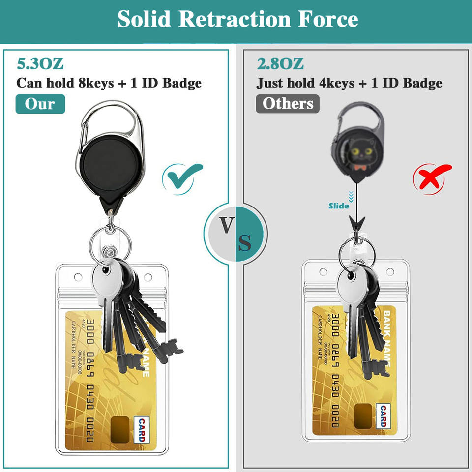 Lot de 50 mousquetons rétractables et porte-badge, petit mousqueton de camping robuste, porte-badge rétractable en plastique, vente en gros