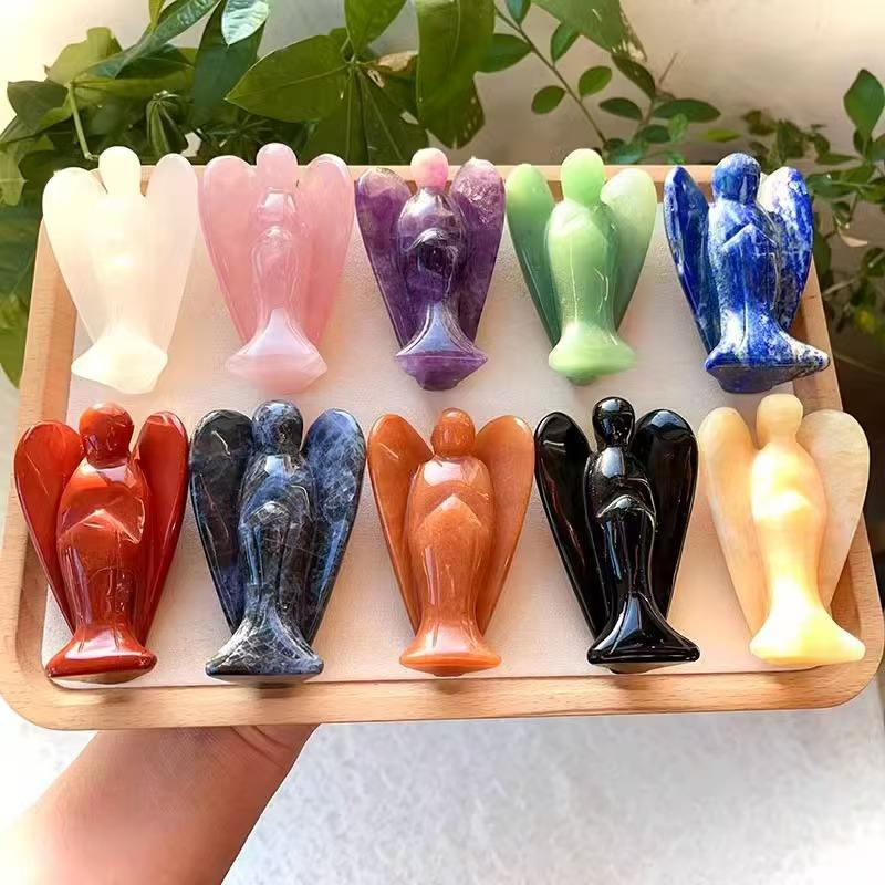 Vente en gros de figurines d'ange en cristal sculptées en pierre de quartz sculptée en améthyste naturelle