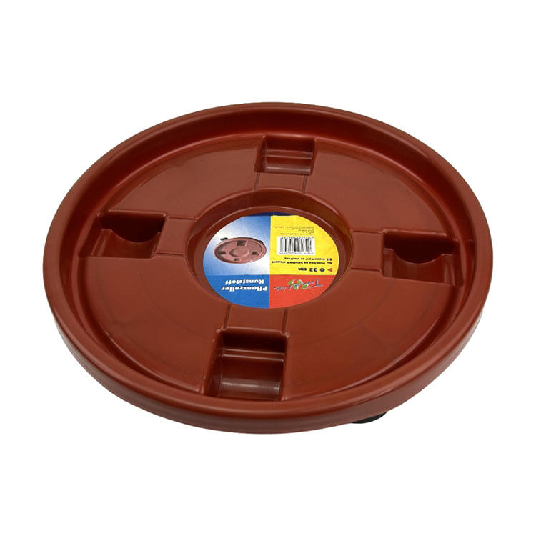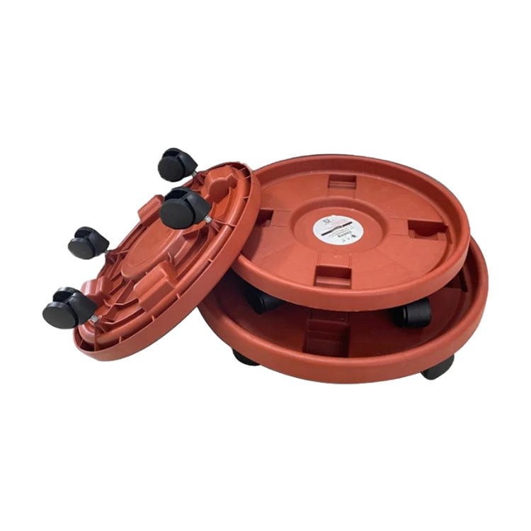 Vente en gros, caddie de plante rond en argent pratique avec roues, support de rouleau, déménageur intérieur extérieur, roulettes de jardinière, plateau roulant