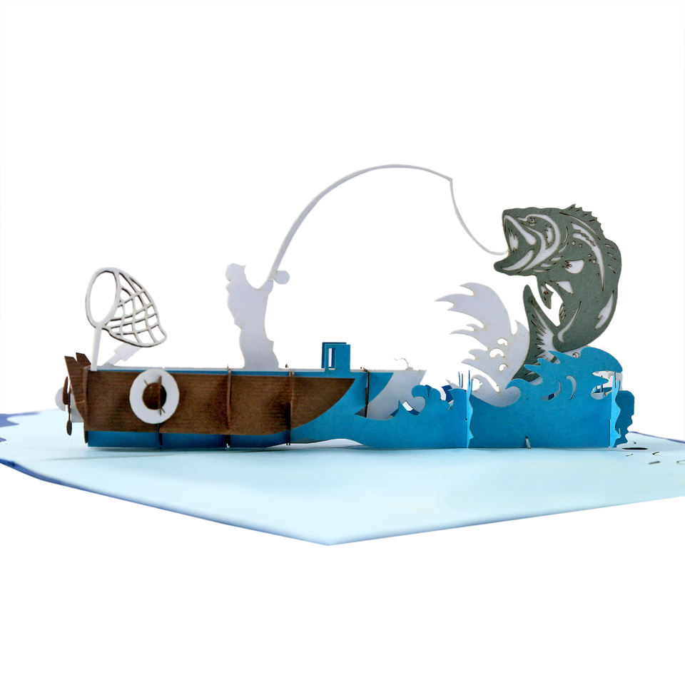 Vente en gros de cartes de vœux 3D personnalisées, invitation en papier design pour la pêche, merci d'anniversaire, OEM/ODM en petites quantités