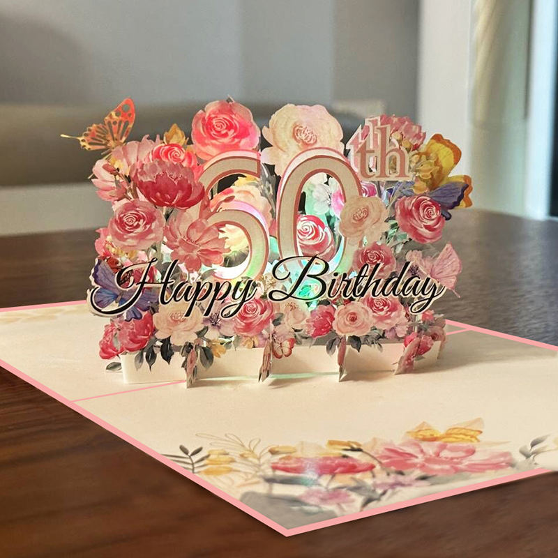 Vente en gros de cartes de vœux pop-up 3D personnalisées faites à la main, papier musique légère, chanson numérique pour les affaires, joyeux anniversaire, événements de remerciement