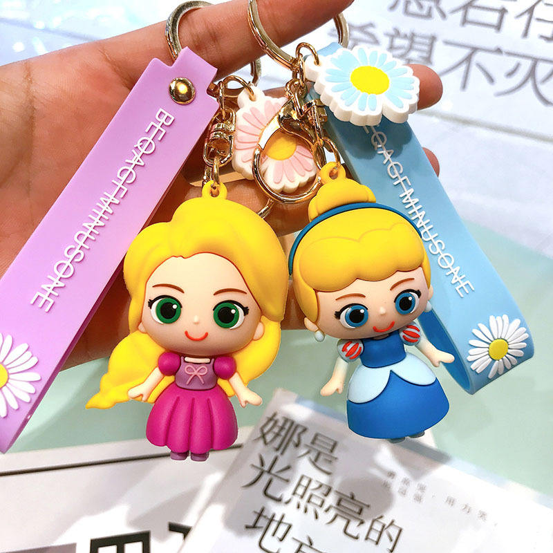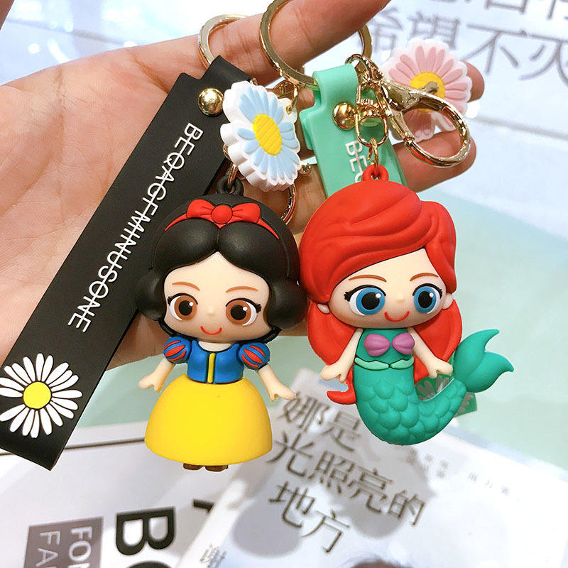 Wholesale Cute Cartoon 3D Mermaid Princess Frozen Keychain Rubber Promotional Gift Key Ring Custom Car Key Handbag Accessories