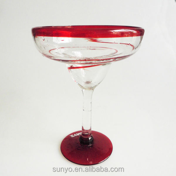 Product Name:Hot Saled Red Rim and Bottom Swirl Margarita Glasses