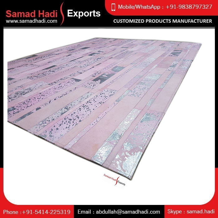 Vente en gros directe du fabricant Tapis de prière en cuir de vachette rose de style moderne brodé à la main pour les maisons